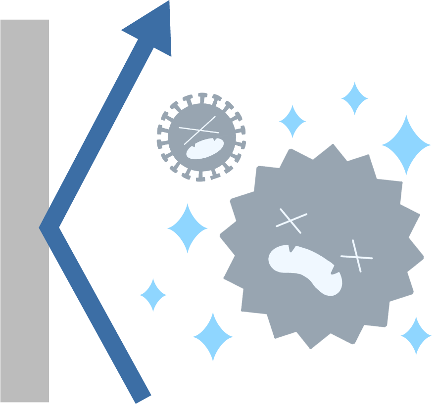 - 空気の王様 抗菌 抗ウイルスコーティングは光を必要としない空気触媒(無光触媒)のため、光の届かない場所でも効果を発揮します。